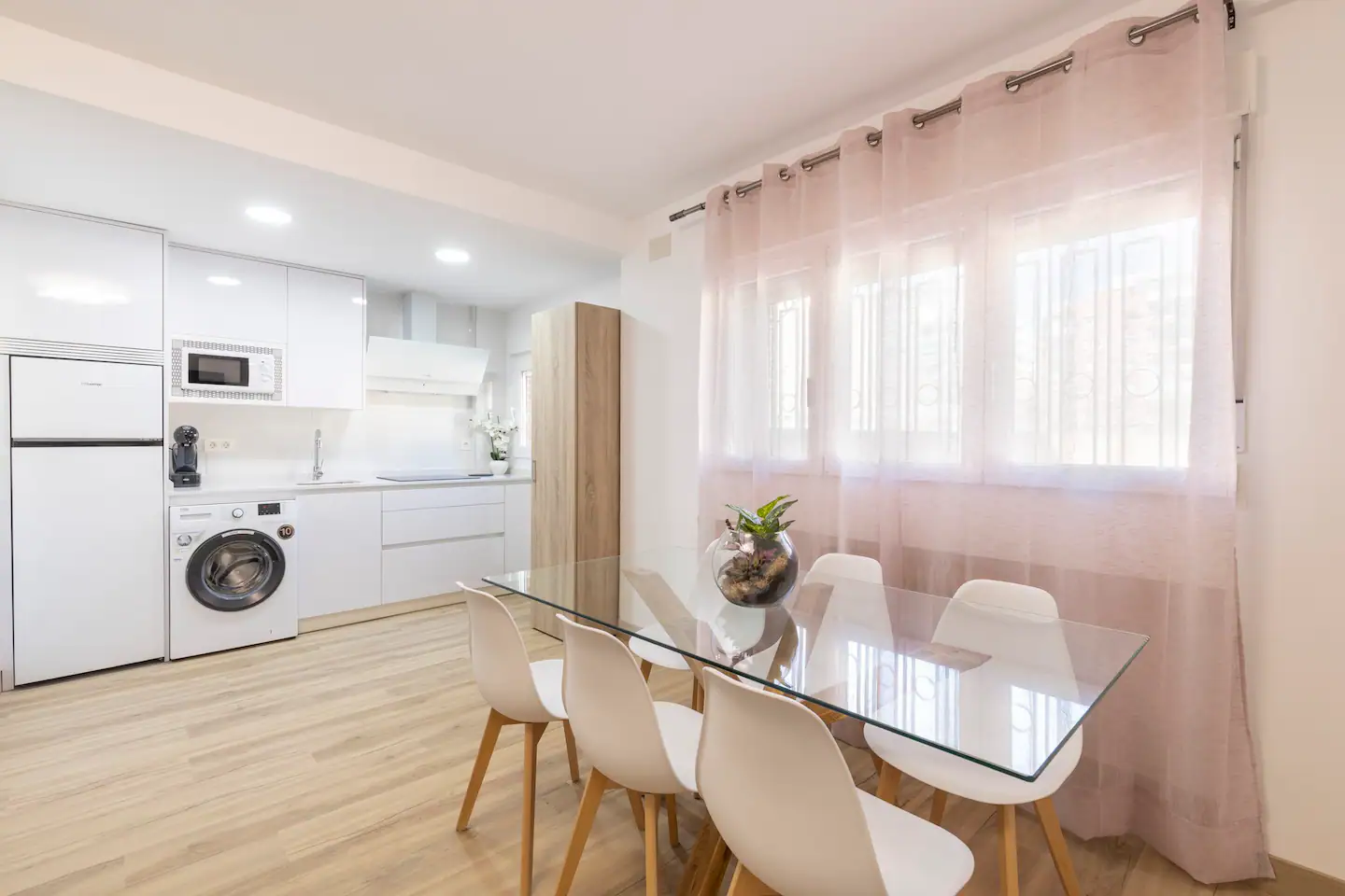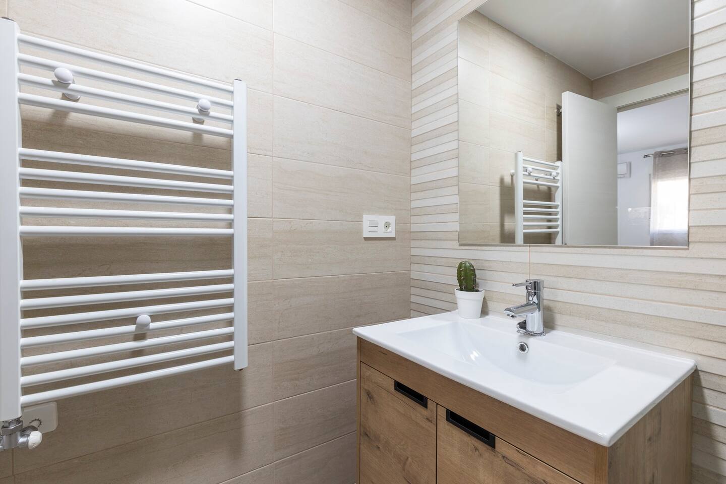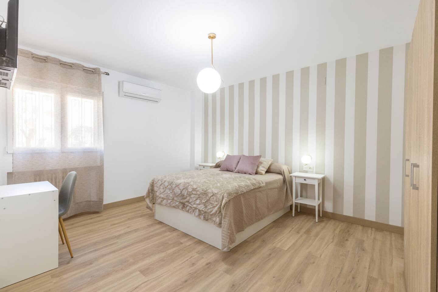 Alojamiento distribuido en tres grandes dormitorios, con colchón de alta gama de 1,50cm,zona de trabajo, televisión, calefacción y aire acondicionado en cada habitación, el salón tiene sofá cama de gran calidad, cocina completamente equipada y dos baños completos para evitar largas esperas en la ducha.